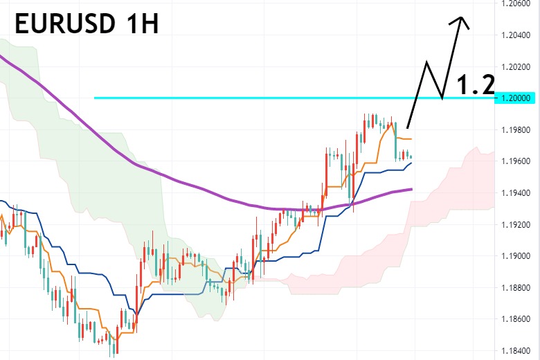 欧元兑美元走势(EURUSD)分析及操作建议 欧美对短线技术评估和走势 观察欧美对小时图,云图快线与慢线黄金交叉,处于云...
