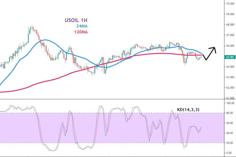 美油(USOIL)走势分析及操作建议 美油(USOIL)短线技术评估和走势 观察美油1小时图,反弹站回短周期24MA,以...